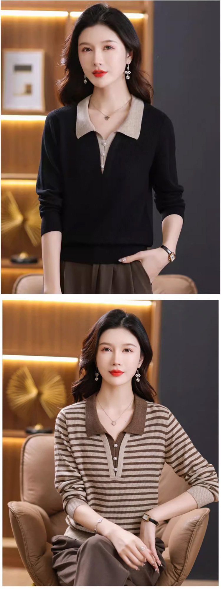 配色切り替えカシミヤニット全体画像